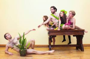 I met up with Rosamund Small, writer of Genesis & Other Stories, one of the site-specific productions that you can (and should) check out as part of the 2013 Toronto Fringe Festival July 3rd to the 14th. Contrary to what the promo pictures might suggest, should you have seen them tantalizing your facebook walls and twitter accounts, she was fully clothed in a lovely summer outfit, with no cheekily-playful shrubbery keeping her modest. We talked craft beers, excessive amounts of hummus and the world of theatre school and life after on the patio of Grapefruit Moon in the Annex. And then when our hummus plate finally was left bare, we talked about the play she’s been developing for four years and is still apparently re-writing a week before show-time, Genesis & Other Stories…