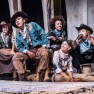 When I walked into the rehearsal space for DIVINE, the women of the cast were already in costume. I caught sight of holsters and cow hide wrapped around their waists. Two actors were clasping plastic bottles molded into the shape of guns. It’s a hot room, and the cast was dressed head to toe. The women, a powerful group, sauntered across the stage and stood ready to begin.